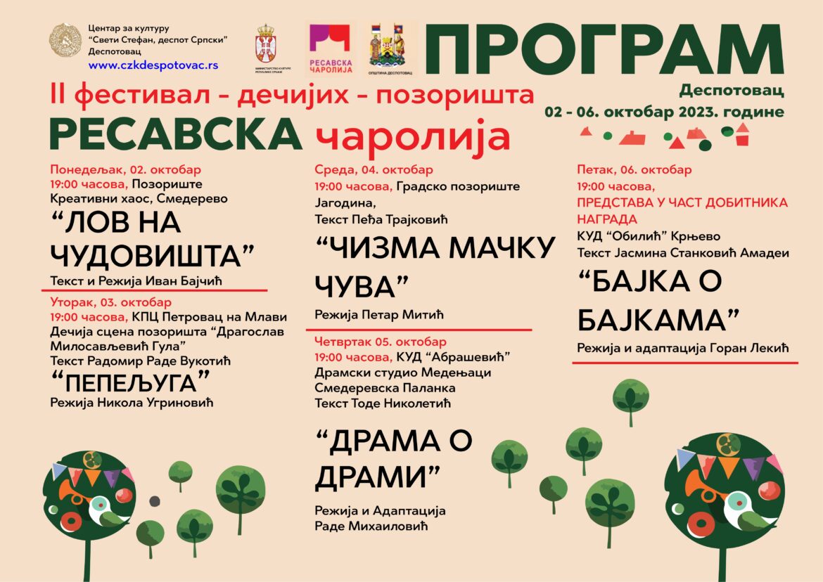 У понедељак, 02. октобра 2023. године почиње сада већ традиционални ДРУГИ фестивал дечијих позоришта.